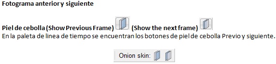 Permite aplicar el efecto transparente de una capa de cebolla, para visualizar el contenido del fotograma anterior o siguiente, para poderle dar seguimiento a la trayectoria de una animación.