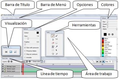 Pencil es un programa para generar animaciones, de libre distribución, para sistemas operativos Mac OS X, Windows y Linux, en el cual puedes agregar tus dibujos digitalizados, previamente elaborados en papel o los puedes realizar directamente en el programa con las herramientas incluidas, ordenar la secuencia de animación y agregarle elementos de audio, podrás difundir tus animaciones mediante Internet, sin importar el sistema operativo que se emplee, solo necesitaras el visualizador de páginas Web.